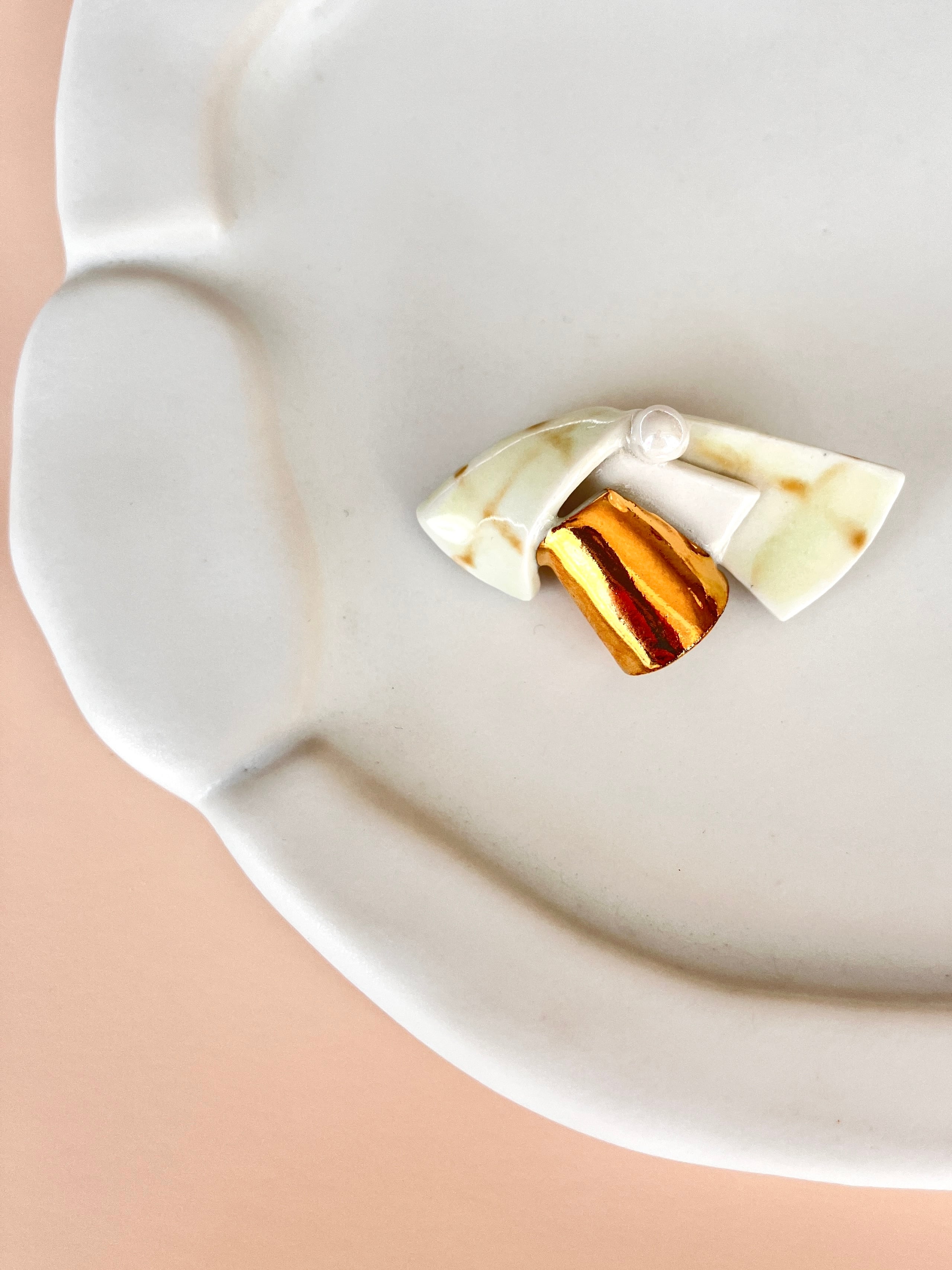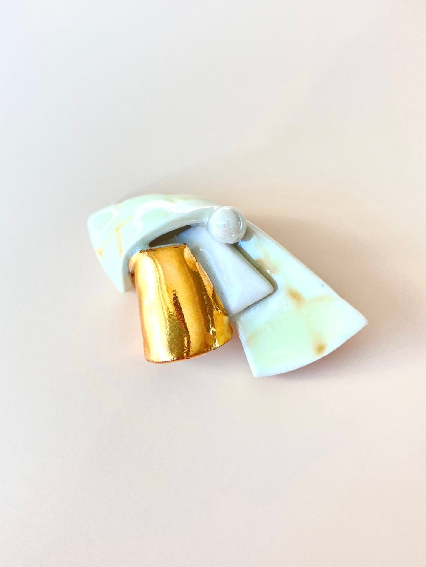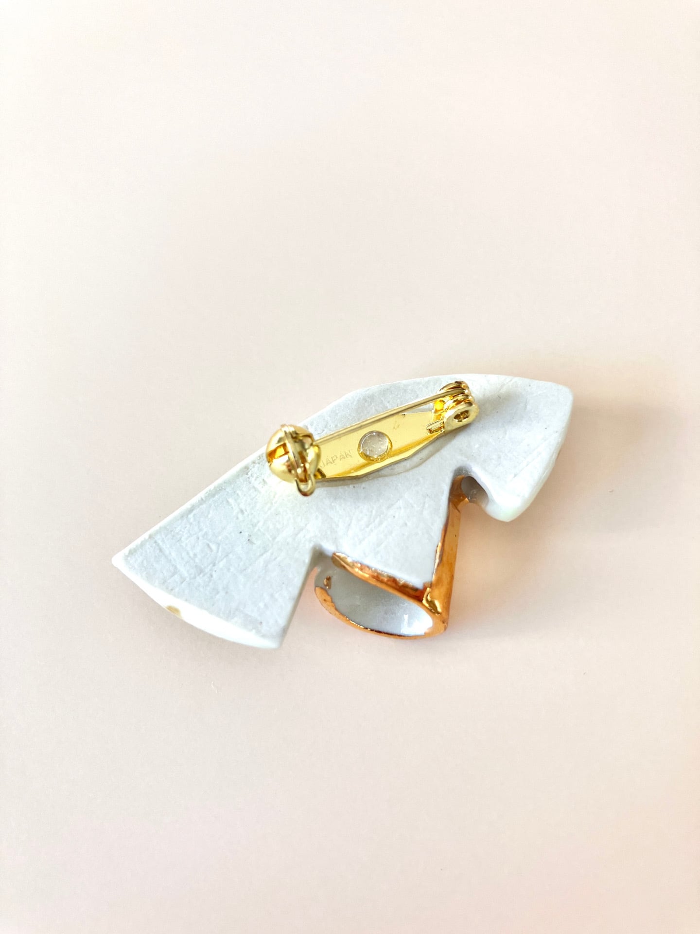 陶土に施釉、さらに金彩、パールラスターを施しています。