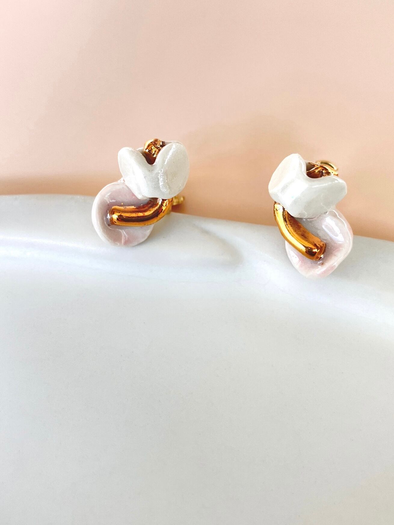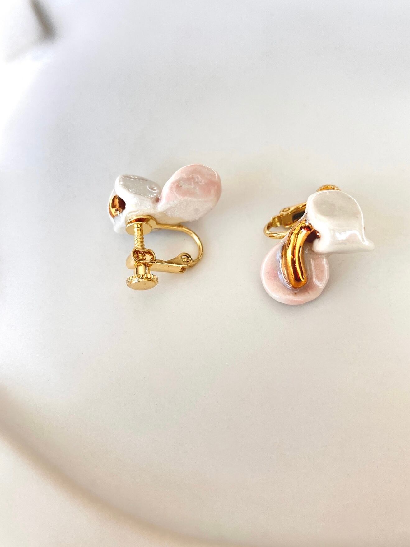 陶土に施釉、さらに金彩、パールラスターを施しています。