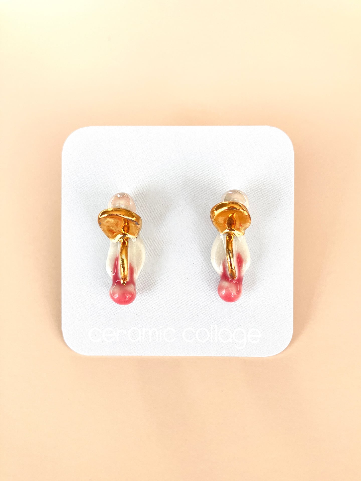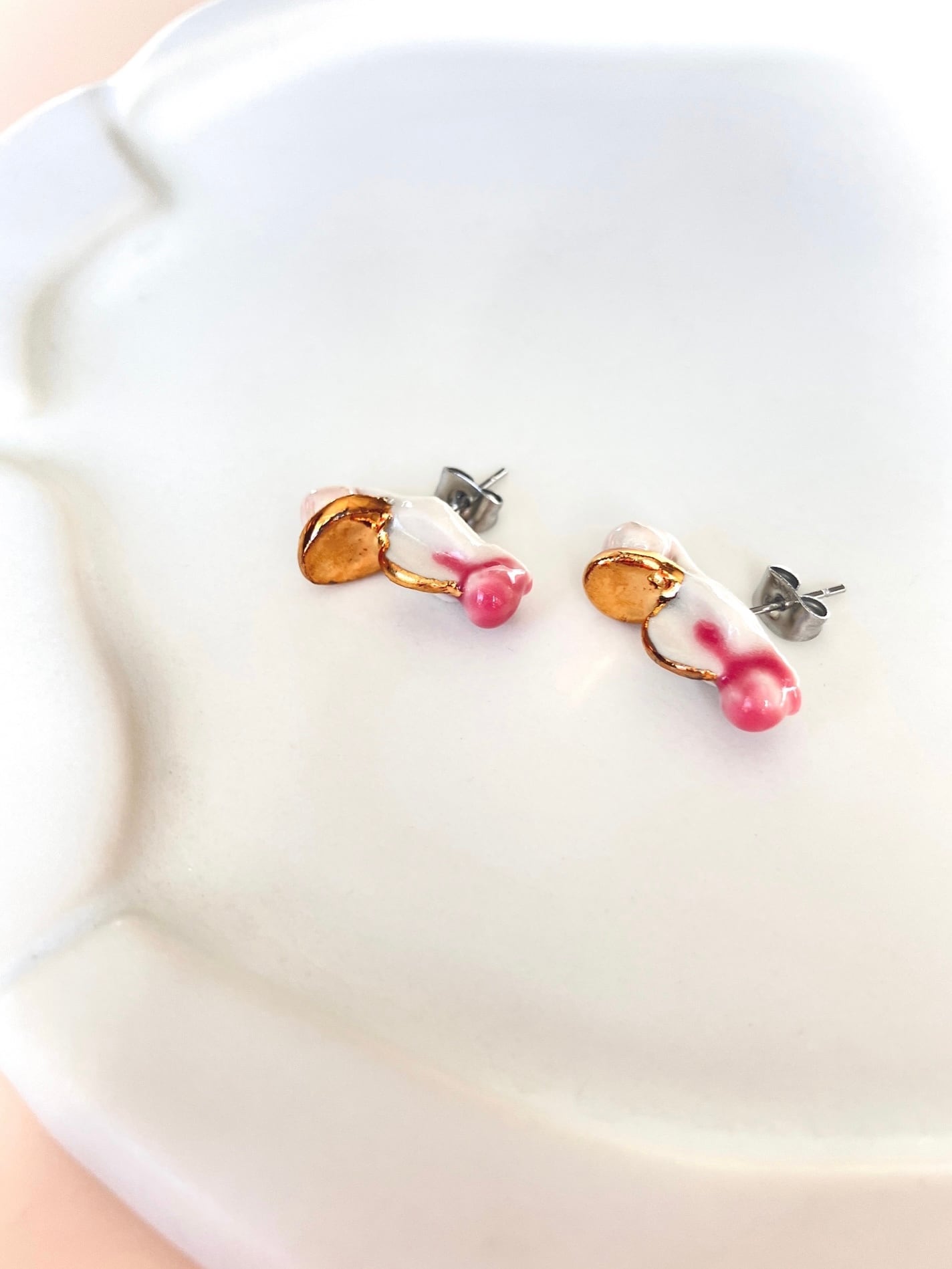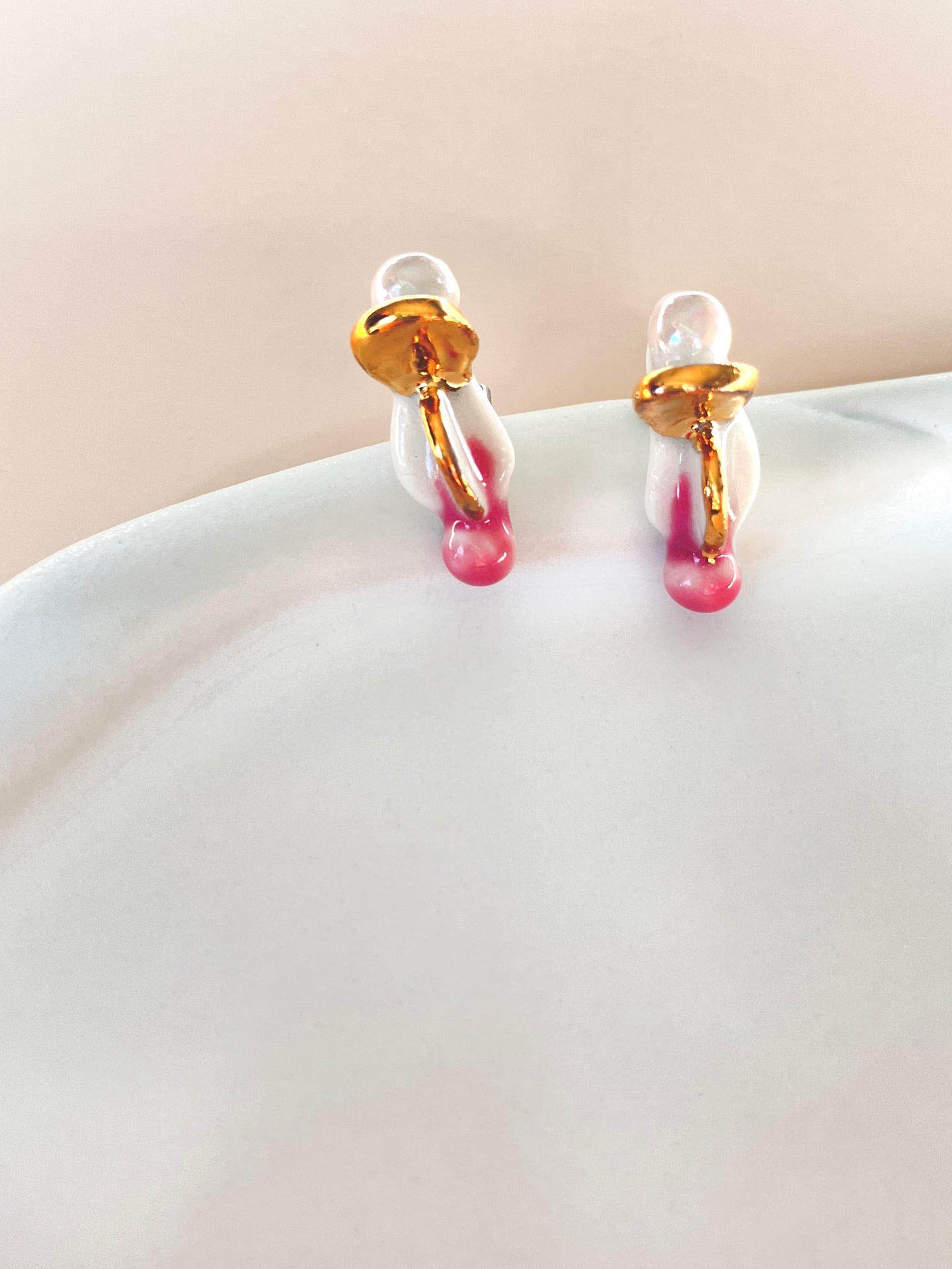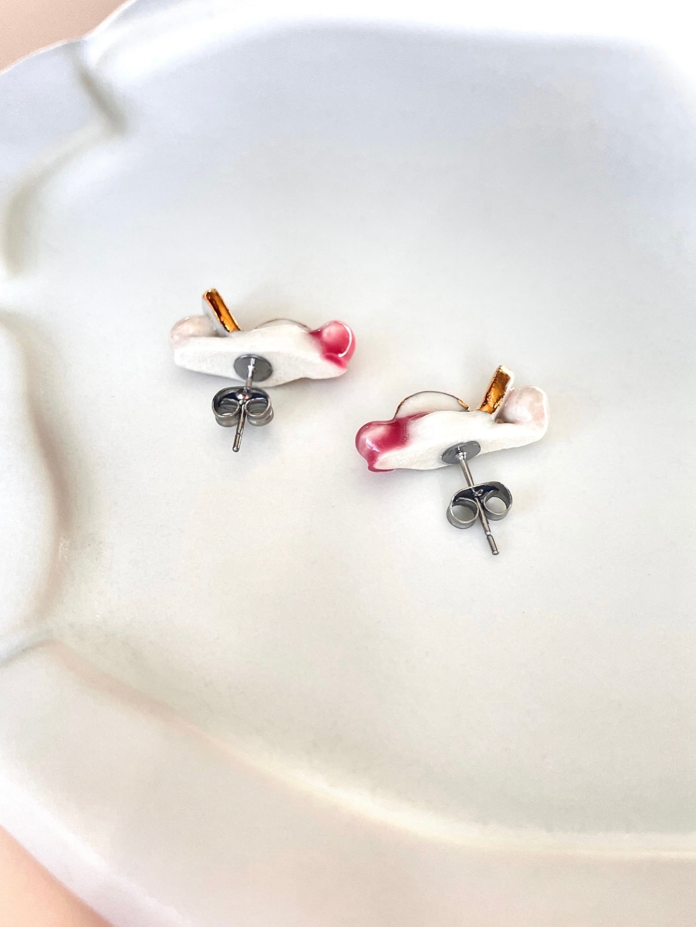 陶土に施釉、さらに金彩、パールラスターを施しています。