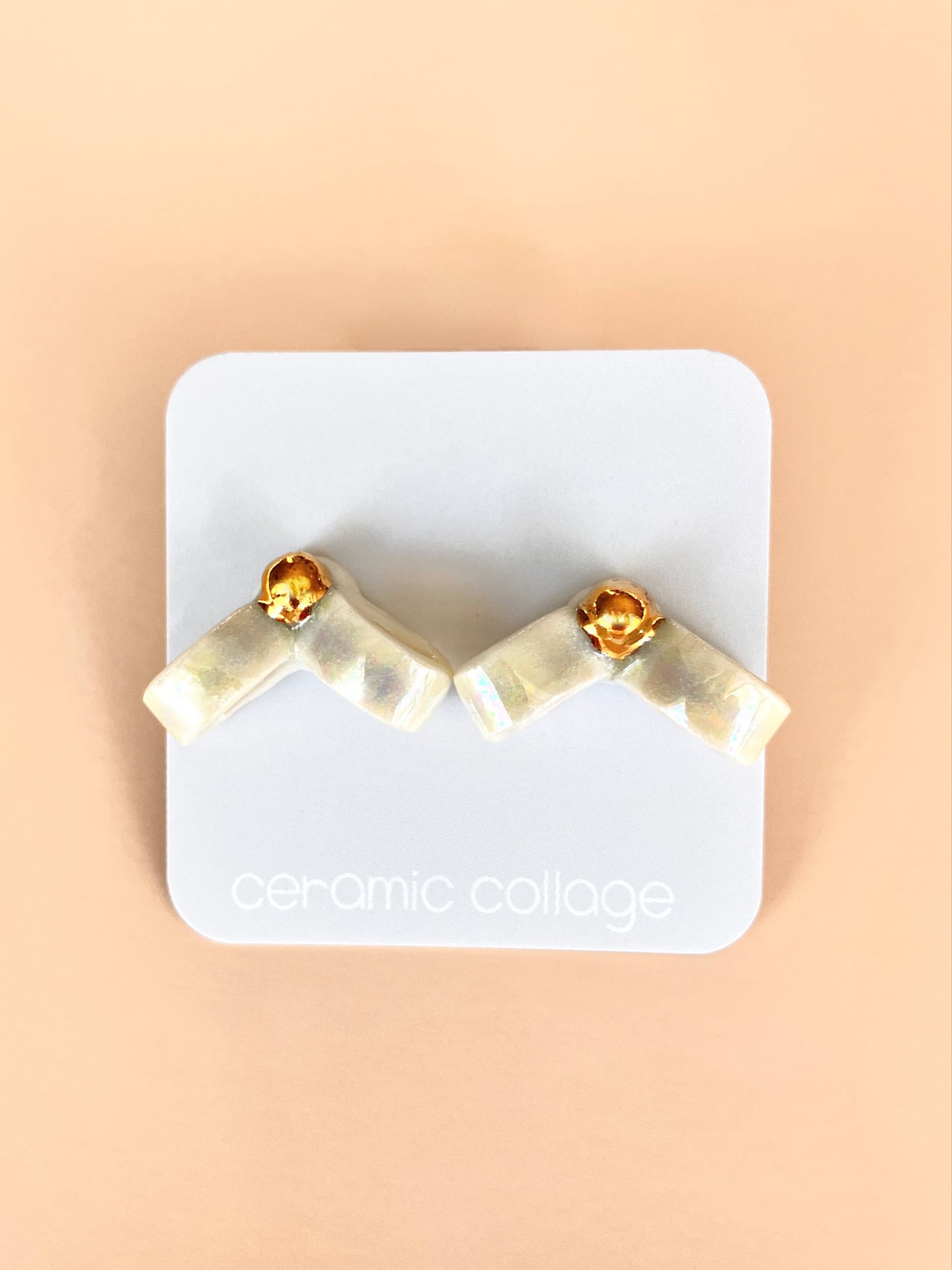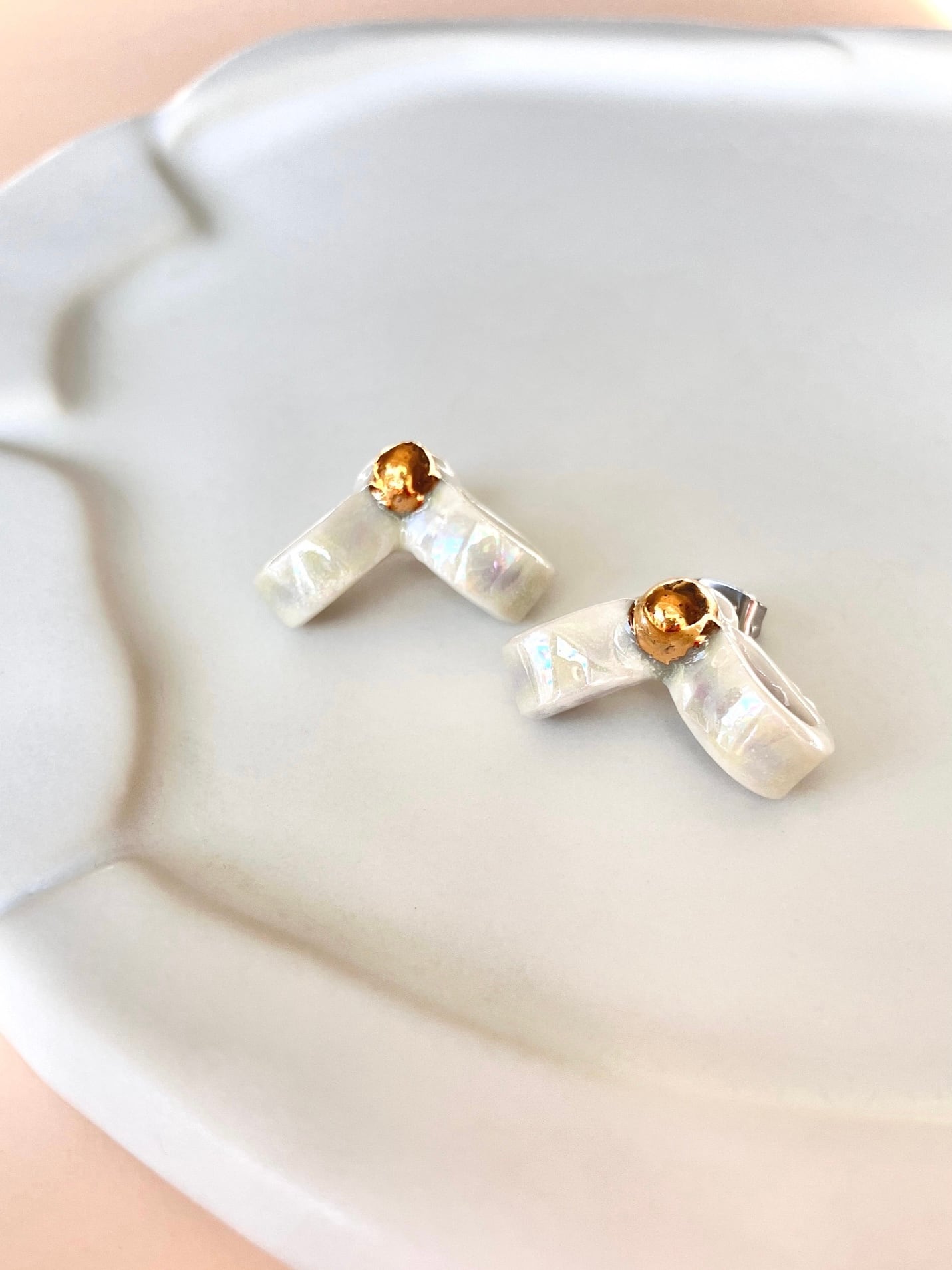 陶土に施釉、さらに金彩、パールラスターを施しています。