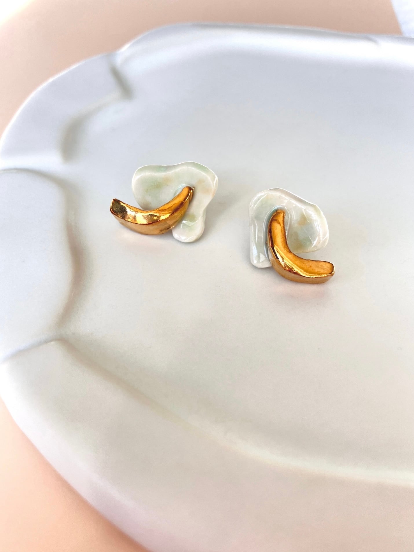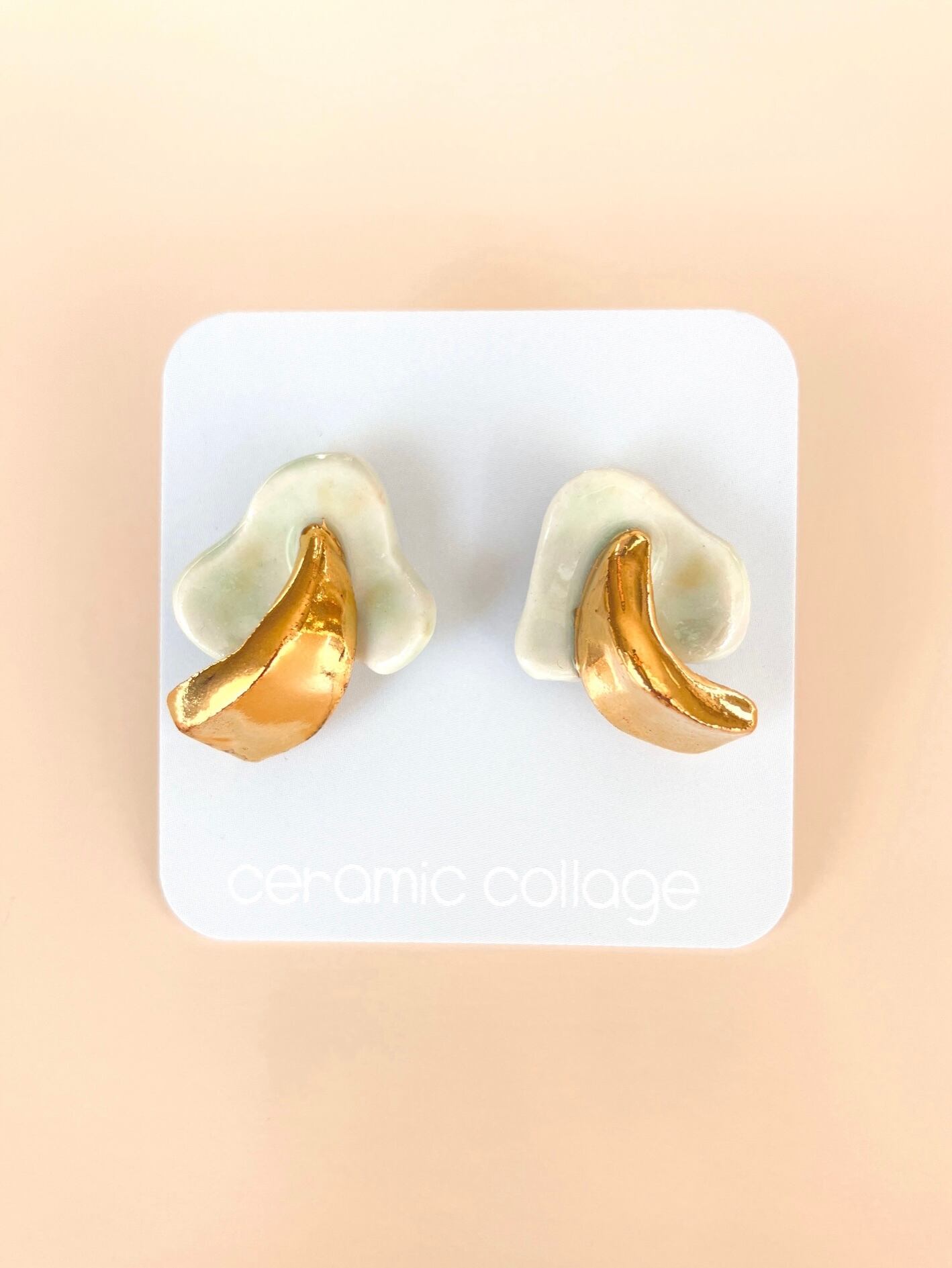 淡いグリーンと茶色のクローバーのような形に立体的な金色のパーツが映えます。